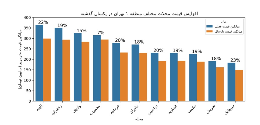 - بدون در نظر گرفتن محدوده محمودیه، میزان افزایش قیمت در بازه 15 تا 23 درصد قرار دارد.